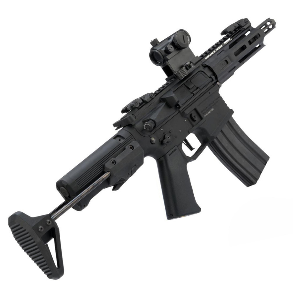 The Trident MK2 PDW is the most compact rifle in the series and is designed for maximum maneuverability and control. The PDW utilizes AR/M4 style magazines and sports similar controls for those familiar with the platform. In addition to looking futuristic and functional, the PDW is also a fantastic performer thanks to its gearbox.