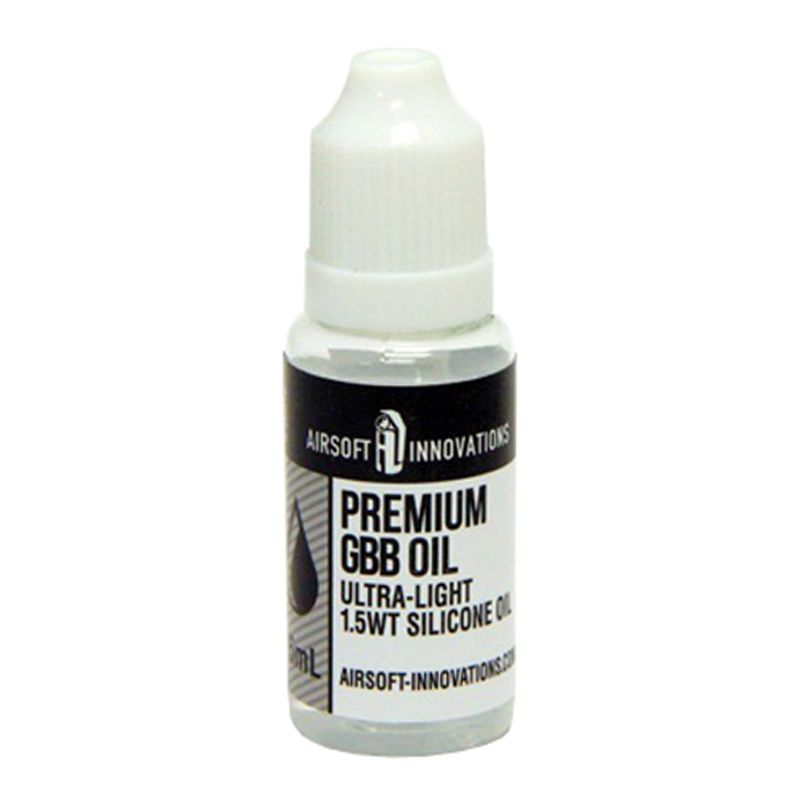 Comments: Silicone oil for use in Airsoft Innovations grenade lubrication. Inject 2 drop of oil into grenades once every 2 fills to maintain seals. Comes in a 15ml eye dropper bottle with waterproof label and spill-proof cap.