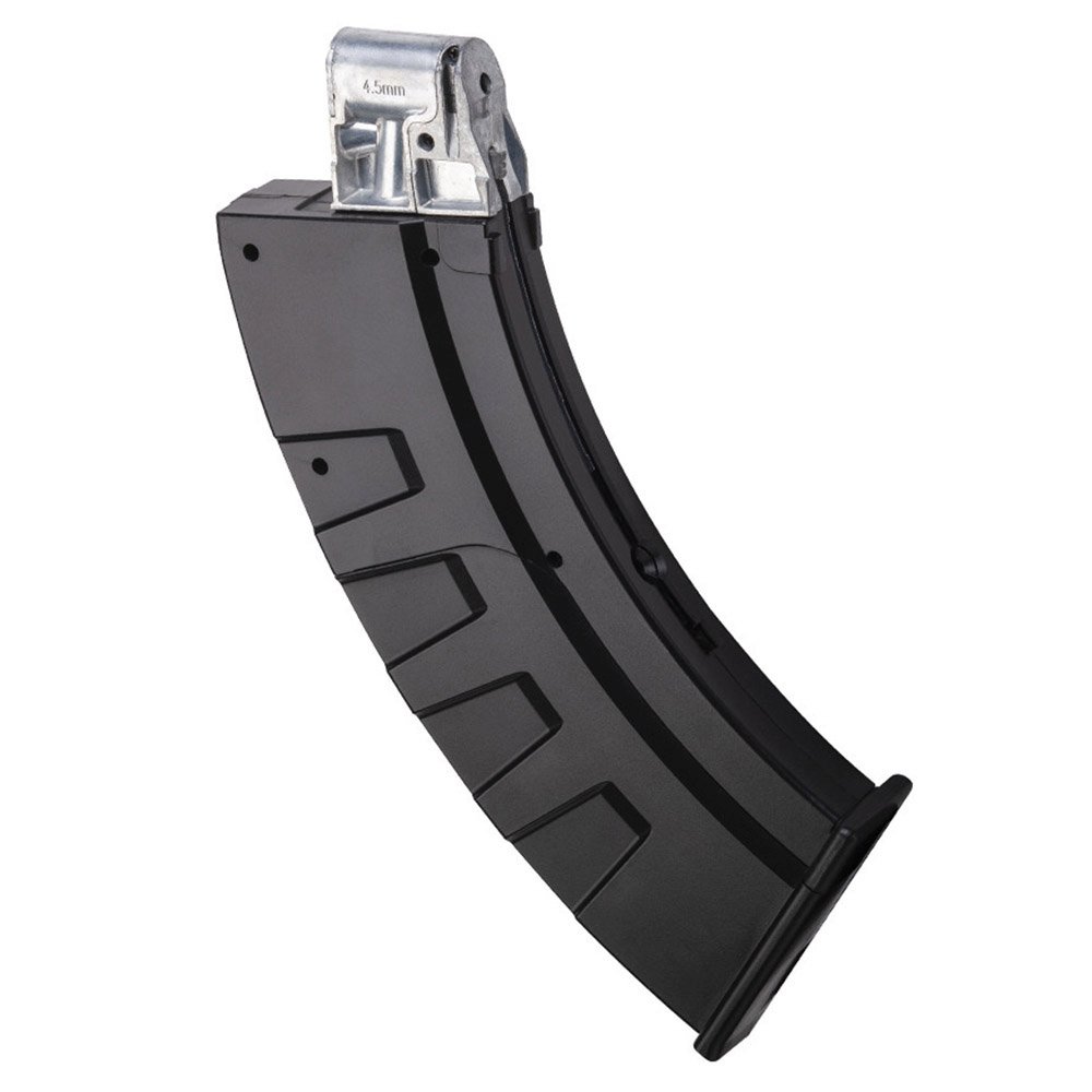 Crosman Full Auto AK1 BB Magazine is spring-fed for smooth operation and gives shooters more time to shoot because of an extra magazine that allows fast swaps. Load CO2 cartridges and BBs ahead of time to maximize efficiency.
