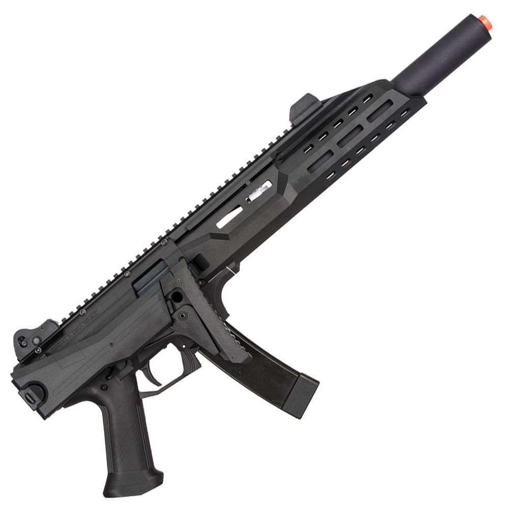 Comments: The CZ Scorpion has already championed the CQB arena, but this new and improved EVO 3 A1 B.E.T. model is ready to take on the outdoor field. The extended inner barrel is covered with an integrated mock supressor, which combined with upgraded internals, boosts accuracy and muzzle velocity for peak long-range performance. The handguard has also been improved with an M-LOK rail system for better accessory customization. Just like the original SMG Scorpion, this rifle features an exact replica of the real gun’s fiber-reinforced frame with the iconic folding stock and ambidextrous 3-mode fire selector. This US model has a blaze orange tip in compliance with federal law. Batteries and charger not included.
