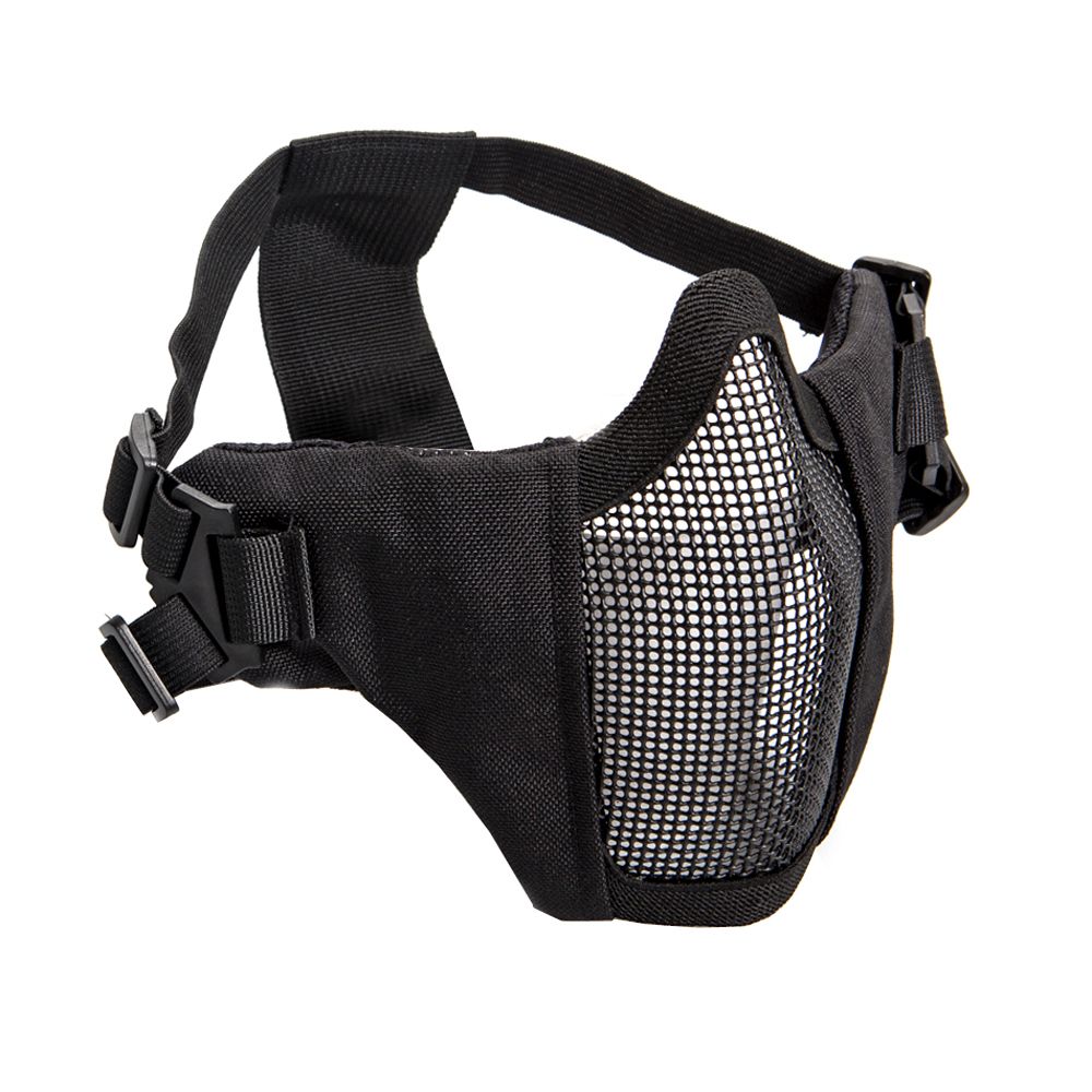 Superior comfort and protection. This combo nylon/metal grid mask covers the lower face, features fully adjustable upper, and lower elastic straps as well as rear retention webbing insert, which keeps the straps in place on the head. The soft padded nylon sides of the mask follows the contours of the face and allows easy shouldering of any rifle, so the mask does not get in the way of a clear sight picture. The metal mesh can be adjusted for a perfect fit. Must be used with safety goggles.