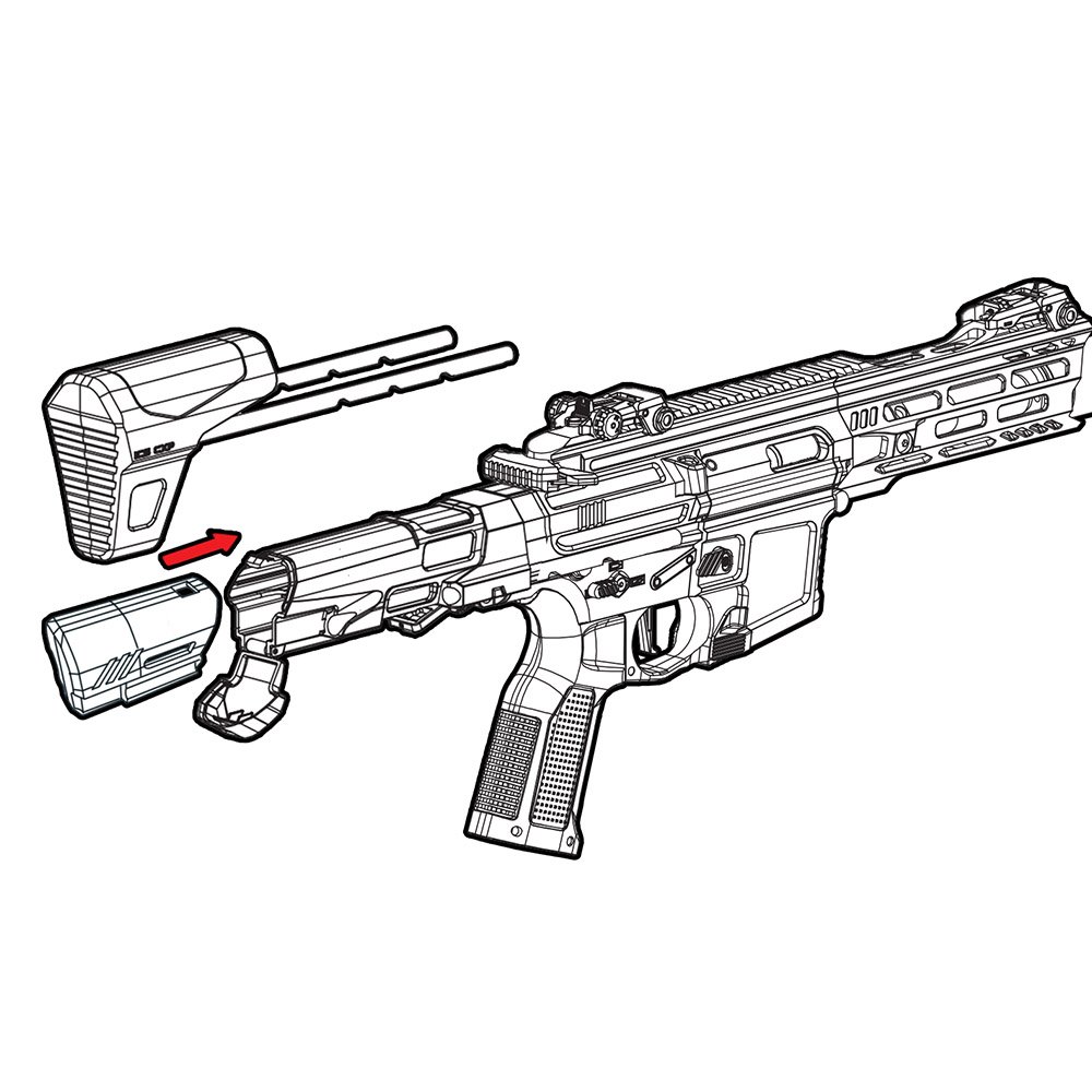 The BEU™ is designed by Airtech Studios to fit beautifully with the ICS PDW's original design by sitting seamlessly inside the stock compartment offering two points of shoulder adjustments to ensure compactness and maneuverability.