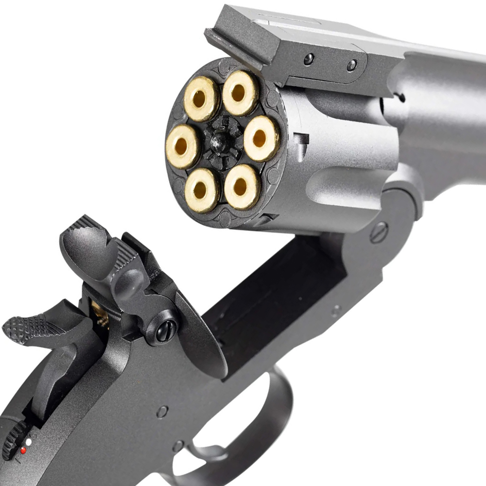 The Barra Schofield Pellet Revolver by Barra Airguns is designed for those who appreciate realism and performance. This BB pistol, featuring a 5" barrel and a robust build of metal and polymer, offers a powerful shot at up to 400 fps. Its classic look is complemented by the authentic single-action hammer.