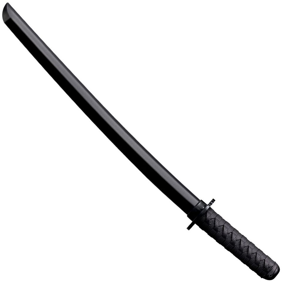 Hundreds of years ago, the Japanese discovered a simple truth; that to become a good swordsman you’ll have to practice, a great deal. To become a great swordsman you’ll have to practice with a “live blade”. And during the period between ‘good’ and ‘great’, you should spend your time building your skills and confidence enough to wield a razor sharp Katana safely and effectively. To accomplish this, the Japanese relied on a simple wooden sword called a “bokken” for much of their training. It was made from the super tough wood of the Japanese Green Oak tree, a wood they called Kashi. The swords produced from this wood had the advantage of replicating the size, weight and feel of a steel sword, while minimizing the possibility of causing grievous or permanent injury to those who used it. Authentic Kashi wood Bokkens are still used today, but are becoming quite costly. They also have the disadvantages, being made of wood, that they may rot, crack split or splinter. Cold Steel’s solution to these dilemmas was to design a synthetic substitute, low in price and impervious to the elements. Our Bokken and our new Wakazashi Bokken are made of the heaviest grade polypropylene available and closely duplicate a real Katana and Wakazashi in length, size, weight and feel. While they’re not quite as rigid as wood, they have the advantages of being virtually unbreakable and remarkably stiff and cut resistant.