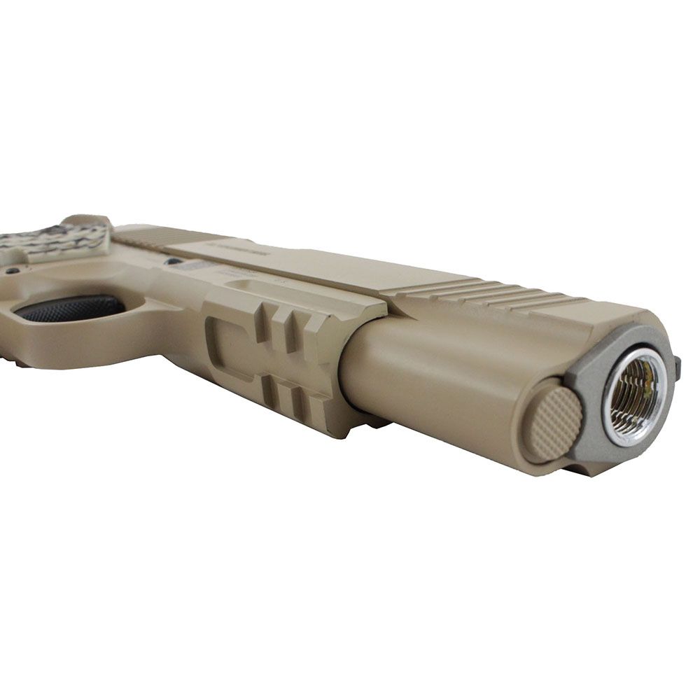 Realism: The KWC Colt 1911 M45A1 Blowback Airsoft Pistol is a close replica of the real steel Colt 1911 M45A1 in almost every way other than the fact that it shoots 6mm airsoft BBs rather than .45 auto bullets :). The only real notable cosmetic difference I saw was the rail having less notches in it, other than that it is bang on, including the layered grips.