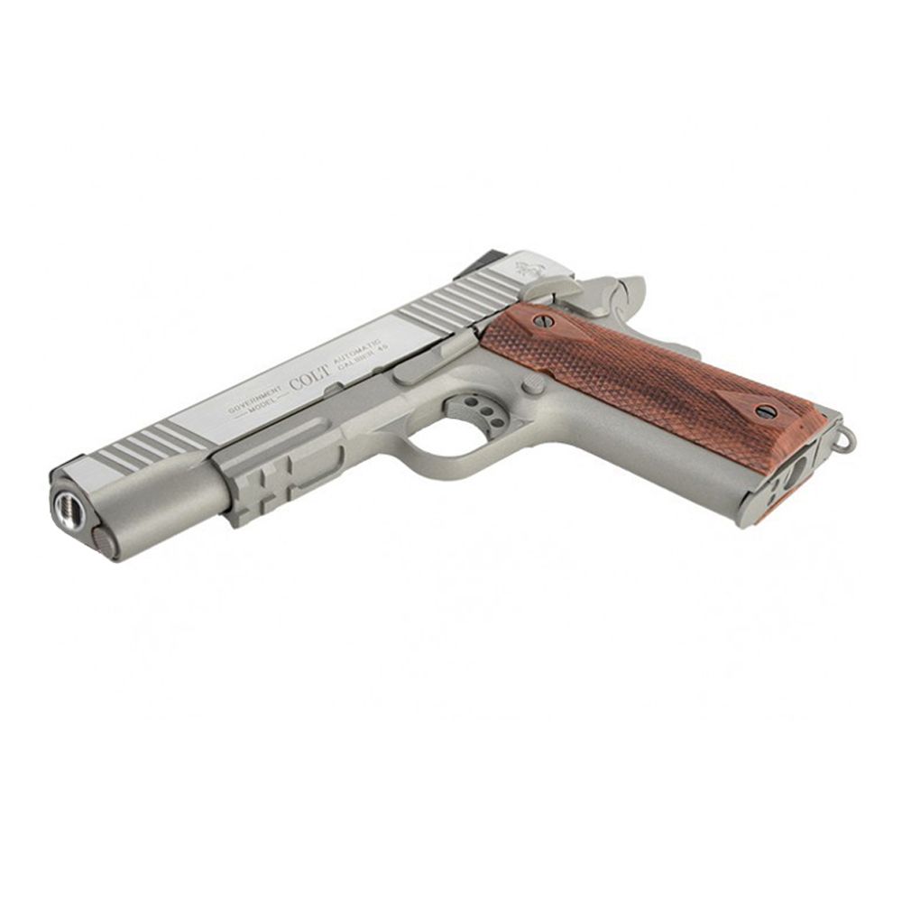 Comments: The Colt 1911 Rail Gun is often recognized as the top fighting handgun ever made. This 1:1 scale replica stays true to the classic construction and design of its real steel counterpart. Realistic blowback action, a full metal slide and frame, and a 20 mm lower accessory rail are a few of the notable features included. A stainless finish with wood grips rounds out this classic gun.