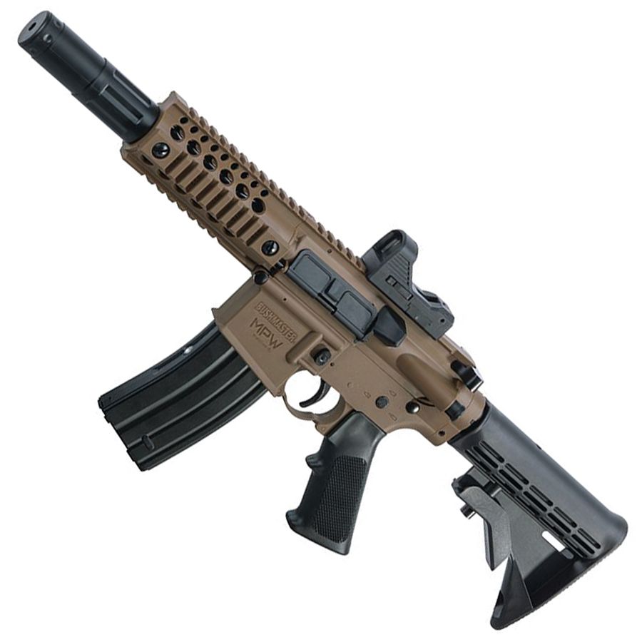Comments: The Crosman Bushmaster MPW CO2 Steel BB Rifle is pretty much the same as the Crosman DPMS SBR with cosmetic changes. One big advantage over the DPMS SBR is the AR-compatible buffer tube which allows you to swap out any AR styled rear stock you choose! You also get an included red dot sight since there are no iron sights. The Bushmaster MPW is super customizable with its quad-rail, so go ahead and dress yours up with iron sights, lasers, tactical lights, foregrips, or whatever else you can dream up.