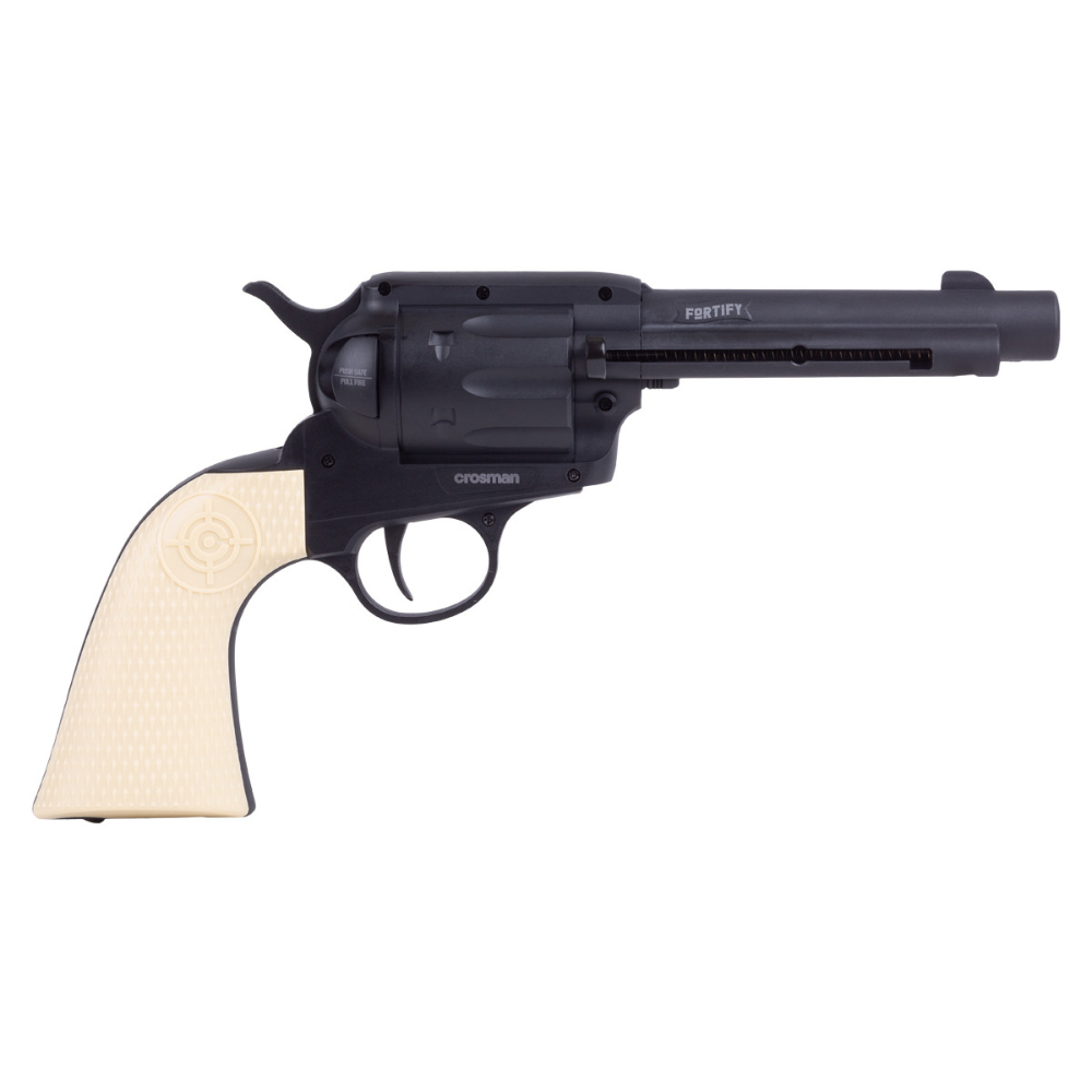 www.replicaairguns.com Type: BB Pistol. Manufacturer: Distributed by Crosman. Model: Fortify. Materials: Mostly plastic, some internal metal parts. Weight:1 pound (455 grams). Total Length: 10.5 inches (26.6cm). Barrel: 5.55 inches 14cm) metal non-rifled. Propulsion: CO2. Action: Revolver SAO. Ammunition Type: 4.5mm Steel BB’s. Ammunition Capacity: 18 round internal magazine. FPS: Claimed 420. The Crosman Fortify Single Action Army CO2 BB Revolver is a completely new concept in design over what we have become use to in today's Single Action Army Revolvers. I want to hold my opinion on it till I actually shoot it as that could make or break this one for me. Maybe if it is a really fun shooter then I can excuse some of the shortcomings it has as a Replica Revolver but I guess we will see in a little bit when I get to my Field Test Shooting Review for it. For under $100 it may be worth it to some to try out especially if you don't already own a Single Action Army Revolver in your Airgun collection. Read my full written review here: www.replicaairguns.com/posts/2024/1/10/crosman-fortify-single-action-army-co2-bb-revolver-table-top-review Buy the Crosman Fortify Single Action Army CO2 BB Revolver in Canada: https://www.replicaairguns.ca/crosman-cr45-fortify-co2-bb-revolver Buy the Crosman Fortify Single Action Army CO2 BB Revolver the US: https://www.replicaairguns.us/crosman-cr45-fortify-co2-bb-revolver