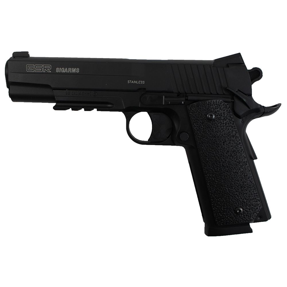 Comments: I ordered my Cybergun Sig Sauer GSR Sigarms with two other Cybergun pistols (the Jericho 941 and Sig Sauer SP2022), all of them in the lower and more affordable price point. The GSR is the heaviest out of the bunch, most likely because of the metal frame. For a relatively inexpensive BB gun you get a lot for your money, most importantly a very accurate reproduction of the real GSR Sigarms firearm! If you're a 1911 fan and want to pick up an airgun that won't set you back too much, then the Cybergun GSR would make a great choice with its heavy weight, full size drop out metal magazine, and true 1911 styled trigger.