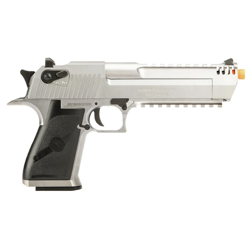 Realism: The Cybergun Licensed L6 .50AE Desert Eagle GBB Airsoft Pistol is an excellent Replica Airsoft version of the real steel L6 .50AE Desert Eagle including the top and bottom rails and the ported front barrel. It also has full blowback action and you can fully field strip it. Combine that with an all metal build and it doesn't get any more realistic than that.