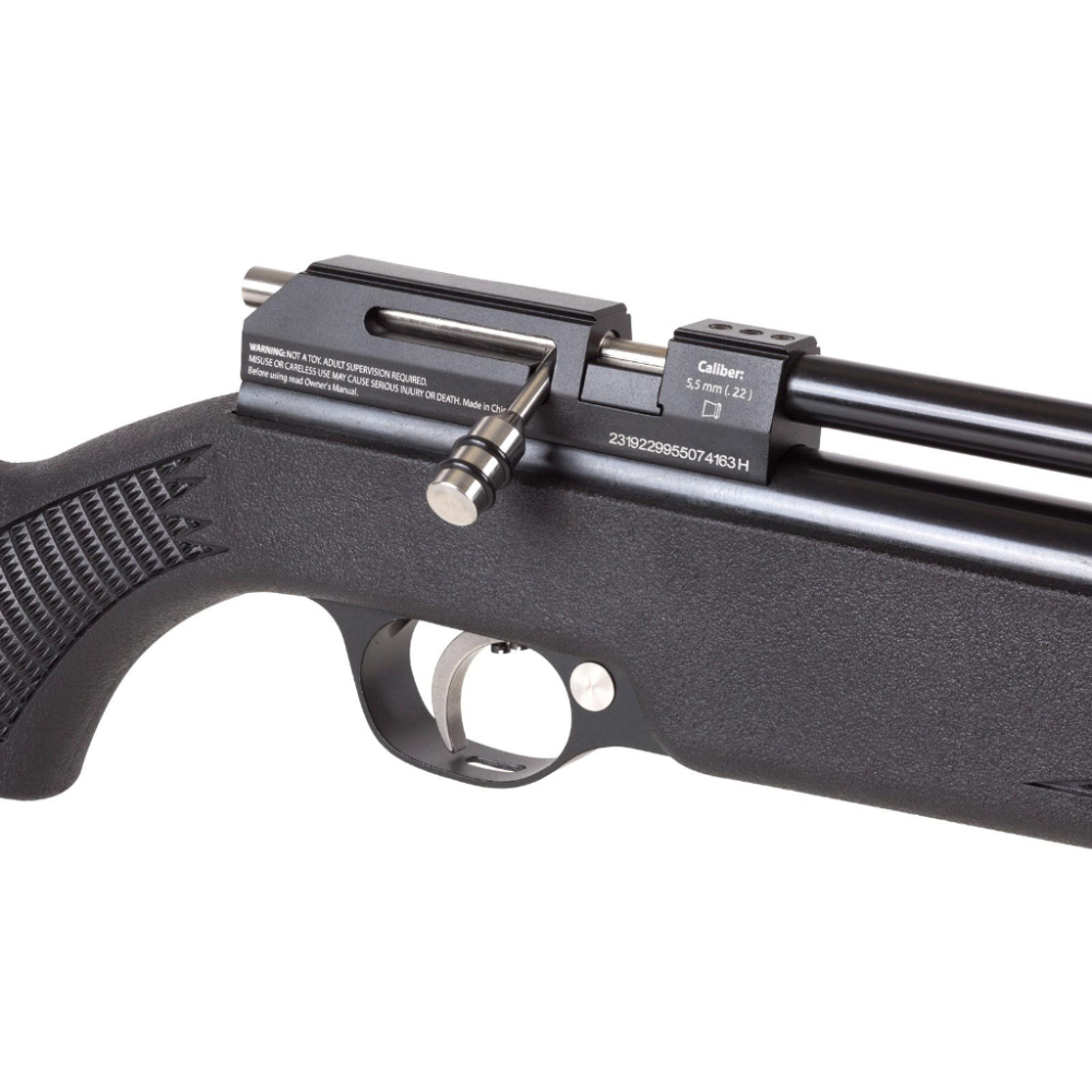 Build Quality: The Trailscout has a robust plastic shaft that ensures durability while keeping the rifle lightweight at 4.9 lbs. The overall construction is solid, and the CO2 system is designed to pierce three 12g CO2 capsules simultaneously, providing consistent power and performance.
