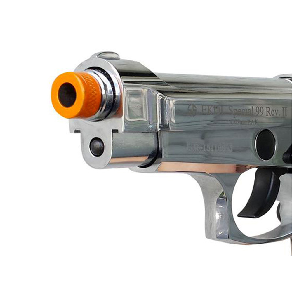 Comments: The EKOL Special 99 blank gun Rev. II is a full-sized, front firing replica with a kick. I like the fact that the EKOL Special 99 is truly a replica gun very closely resembling the Beretta Cheetah pistol which will draw many Beretta fans to this blank shooter. It comes with a two-tone chrome and black finish, making it stand out in a sea of black pistols. Another thing that makes the EKOL Special 99 Rev. II kind of "special" is its almost perfect mid-sized dimensions. It's not too big or small and for that reason should be suitable for almost anyone.
