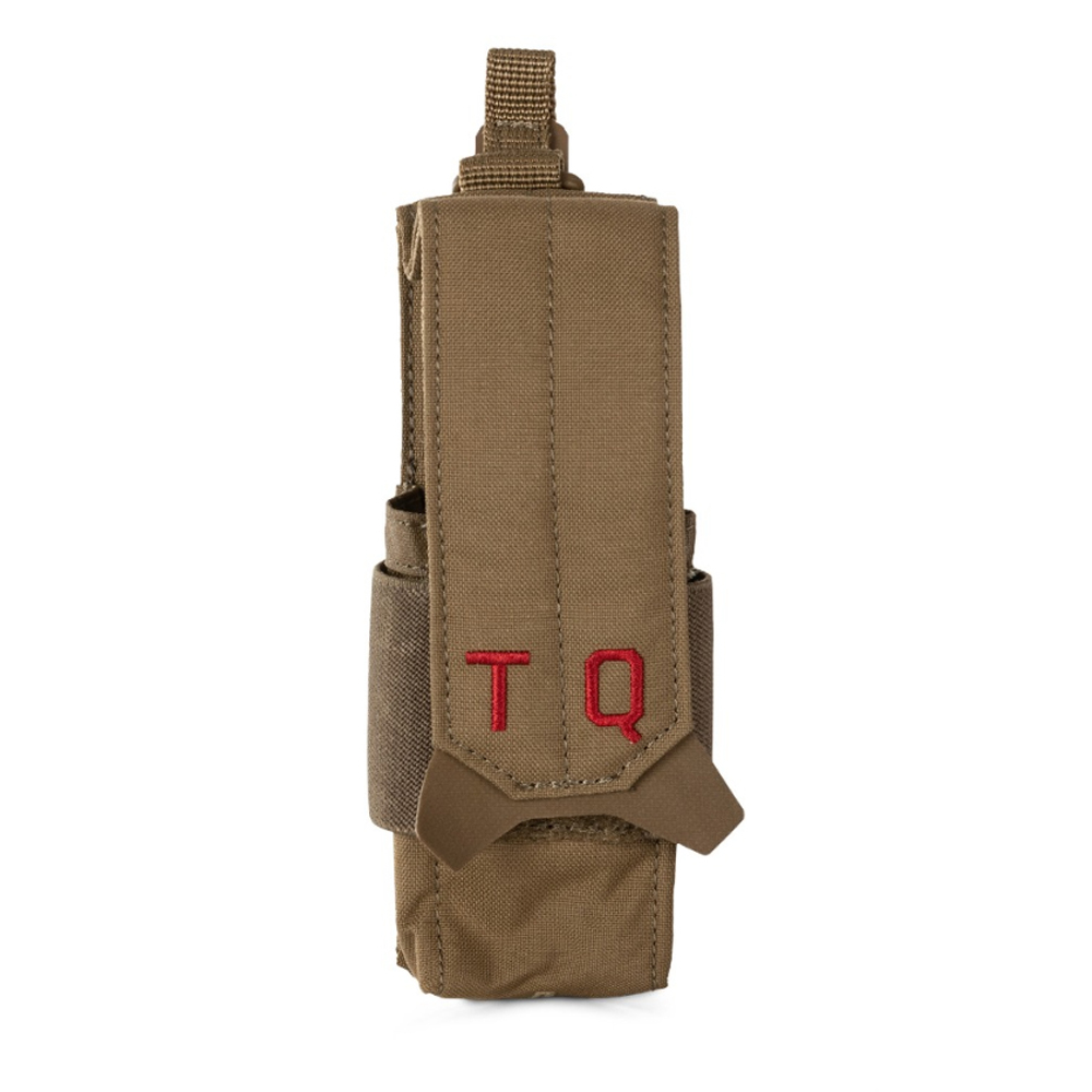 Being a first responder is a passion, not just a job description. Our Flex Tourniquet Pouch provides ready and unfailing access should the unthinkable happen. This pouch can be mounted vertically utilizing the 5.11® FLEX-HT™? Mounting System or horizontally using integrated hook/loop straps on MOLLE platforms as well as multiple angles on HEXGRID®. The Flex Tourniquet Pouch also features a tuckable hook/loop flap for a drop-down plate carrier attachment. Elastic compression webbing keeps everything secure during high-speed movement and the Hypalon® pull tab ensures quick opening when seconds count. Imported.