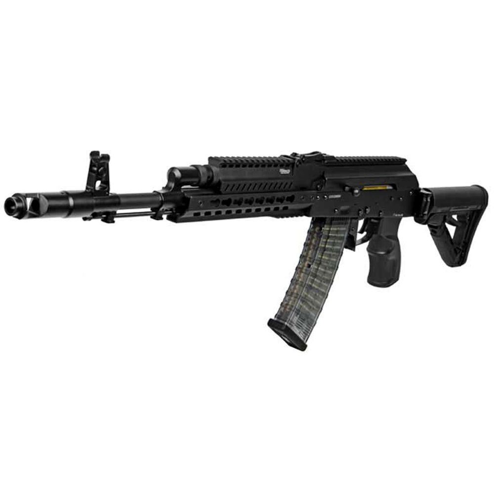 Comments: Refuse to be average in the field! The G&G Armament RK74-T Electric Airsoft Rifle will stand out from a crowd of AKs. This tactical weapon is the largest in the G&G's RK74 series, and features an impressive amount of rail space with the hybrid KeyMod - Picatinny rail system. The stock is foldable and features an M4 style buffer tube and friction lock. The battery and MOSFET are stored in the rail. One of the most exciting features is the ETU (Electronic Trigger Unit), which allows the weapon to go from semi-auto to full burst mode out of the box. Batteries and chargers not included.