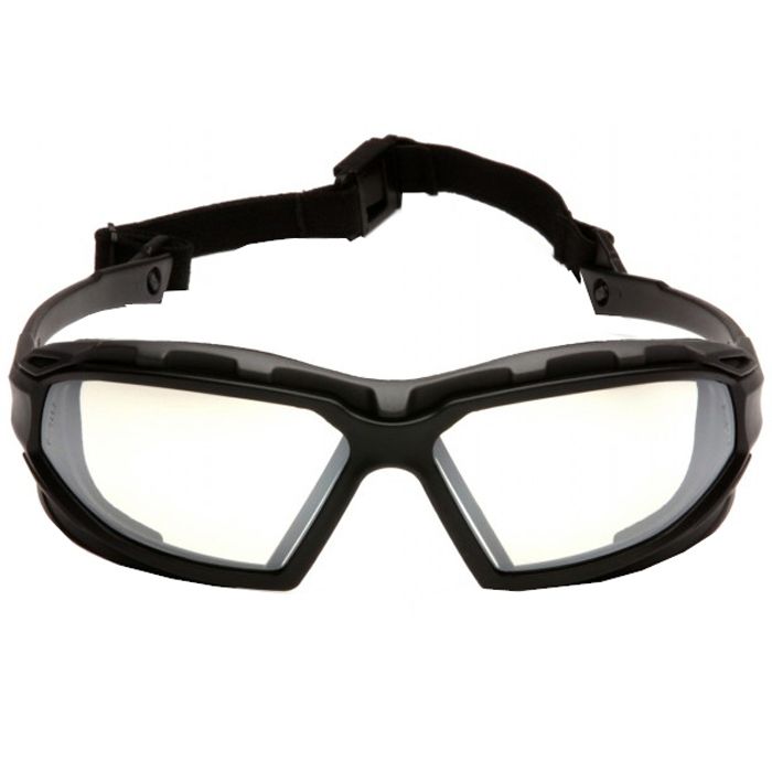 Indirect vented foam carriage. Resilient and durable frame features an extended side shield design. Fully adjustable elastic strap with quick release attaches to temples providing a secure fit. Removable inner foam lens clip provides extra comfort and protection from airborne particles. Remove the lens clip and strap for a sporty spectacle for work or play. Scratch resistant polycarbonate lens provides 99% UVA/B/C protection.