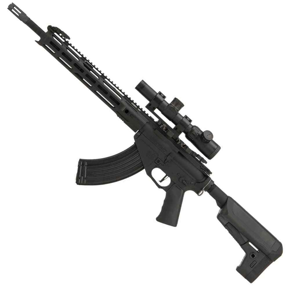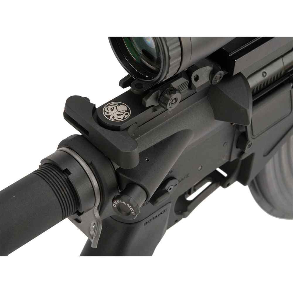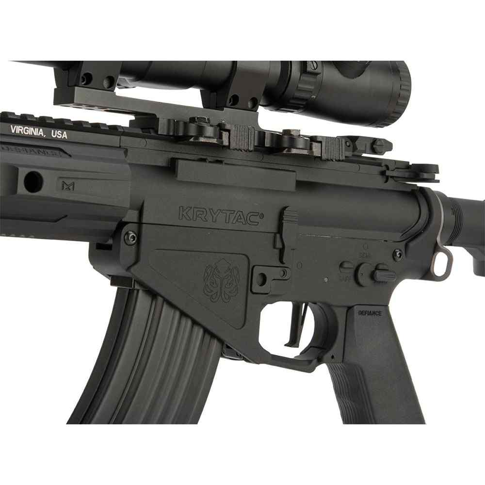Trident 47 SPR-M is designed to be the ideal scout rifle to take into the field. The 16-inch barrel and 13-inch free-floating DEFIANCE TR213 M-Lok rail system give the user numerous customization options. The DEFIANCE hand guard features three prongs at the front that can be used to brace the gun against barricades, eliminating the need for an aftermarket barricade stop rail accessory. An originally designed DEFIANCE pistol grip enhances the rifle's comfort. Additional features include an ambidextrous fire selector and a locking bolt that provides easy access to the KRYTAC rotary hop-up system.