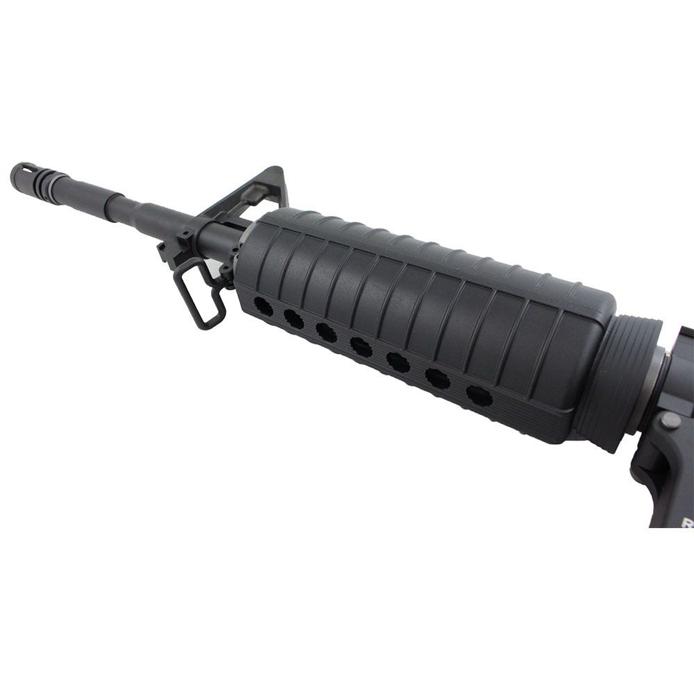 This updated ERG takes the professional airsoft training M4A1 model to a new level of performance with a one-piece full metal alloy upper receiver, a new rotary hop up and a PTS Enhanced Polymer Grip for added comfort. Rear-wired and Li-Po ready, the RM4A1 can still handle the extra power of LiPo batteries. The RM4A1 is also equipped with a reinforced metal gearbox utilizing KWA’s unique 9mm ball bearing bushing combination and case hardened, upgraded precision metal gear sets. Heavy duty springs and a new high-torque motors are matched for optimum results. The KWA RM4A1 Carbine was engineered to outperform, offering ultra high performance and training simulation straight out of the box.