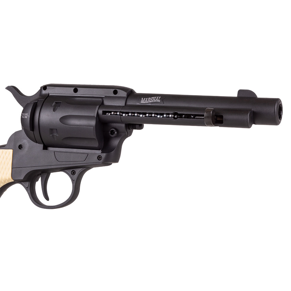 Trigger Pull: The trigger pull on the John Wayne Marshal CO2 BB Revolver is a single action only trigger, so you will have to cock the hammer back with each shot which does take away most of the trigger pull length and weight, making the Marshal trigger short and light and easy to shoot. Ideal for slowed down accurate shot placement, but less effective as an action shooter unless you have a very quick thumb!