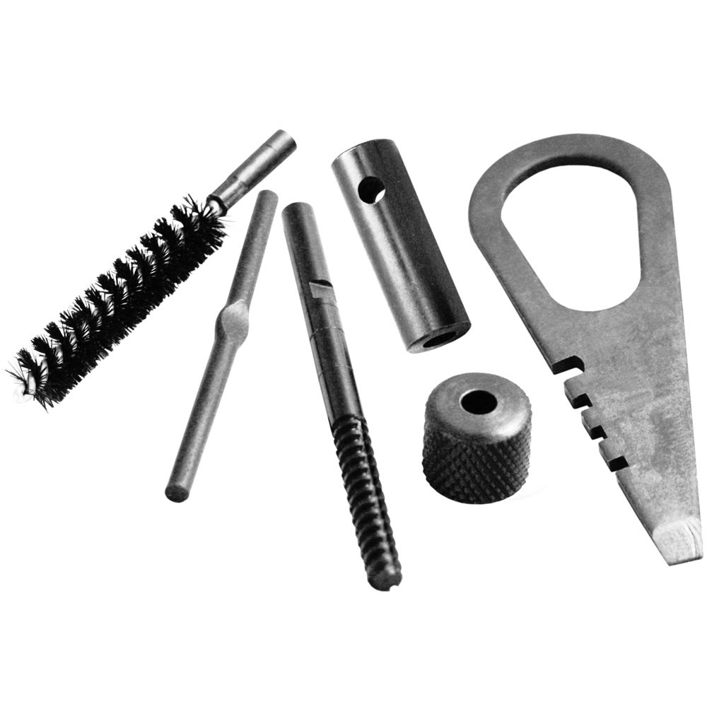 Faithful reproduction of the original Soviet issue Mosin Nagant cleaning kit. Comes with muzzle protector, cleaning rod jag, brush, firing pin depth gauge/screw driver combo tool.