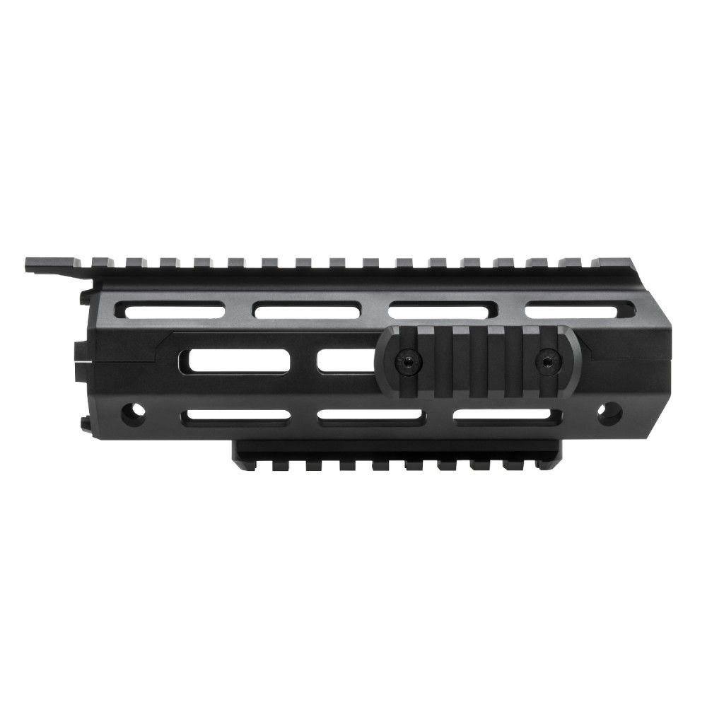 Includes two Accessory M-LOK® to Picatinny Rail Sections. One Short (1½ M-LOK® slots/ 5 slot Picatinny) and one Medium Length (2½ M-LOK® slots/ 9 slot Picatinny) Picatinny Rail sections. They can be placed in any of the 7 angled M-LOK® surfaces.