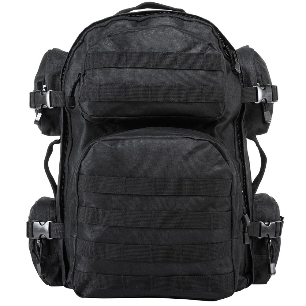 Features include padded shoulder straps, waist and sternum straps, two adjustable compression straps on each side of the military backpack and six external zippered pockets providing ample storage space. The front pockets and bottom of the backpack has PAL compatible webbing to make the Ncstar Tactical Back Pack a modular system. The backpack also has carry handle straps on the top and on both sides of the backpack.