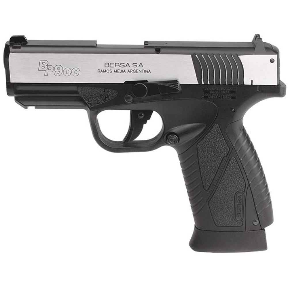 -CO2 Powered -4.5mm Steel BB -20 Round Metal Magazine -Bersa BP9CC Replica -Semi Auto - Single Action Only -Blowback Action -350 FPS -Available from: www.ReplicaAirguns.com