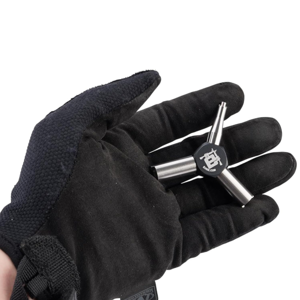 The Precision Stainless Steel Airsoft GBB Triple Gas Valve Key is an essential tool for anyone who wishes to replace, repair, or service their Airsoft GBB pistol and rifle gas valves. The compact size makes this tool perfect to throw into your toolkit, gun bag, or even your pocket. The two larger rifle gas valve key arms are made from high strength SUS303 stainless steel for rigidity while the smaller pistol valve key is made from SUS304 stainless steel for even better durability; a welcomed improvement over other brand valve keys.