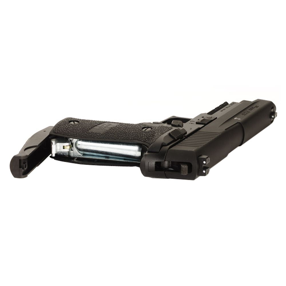 Realism: The Sig Sauer ASP P226 Pellet Pistol is a very close replica of the real steel Sig Sauer P226. I would say it most closely takes after the MK-25 threaded barrel version. I really like the fact that the safety also works as a working decocker, just as it would on the real P226. Other similar working parts are the magazine release and the hammer that stays back for true single action shooting. The slide catch release and take down lever are purely for show but they are not molded in so they look the part. One slight disappointment for me is when a gun does not have a cut out ejection port. That is the case with both the Sig Sauer ASP P226 and P250 but it does not take away from the shooting fun in any way.