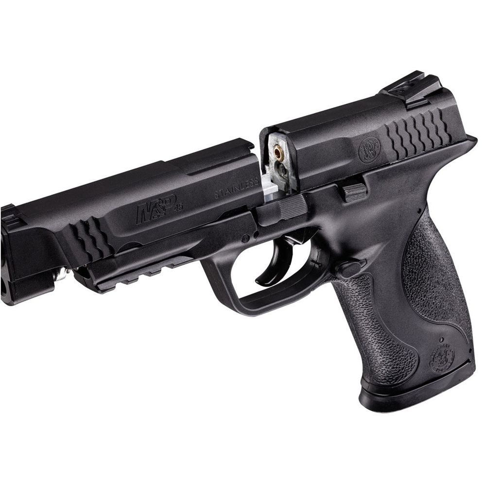 Realism: The Umarex S&W M&P 45 is a licensed replica of the actual Smith & Wesson M&P 45 semi auto pistol. It is a very close looking copy with the exception of the missing extractor pin and right side slide release. There is a lot of attention to detail that helps make this gun very believable like the large diameter barrel opening and Smith and Wesson markings throughout the airgun!