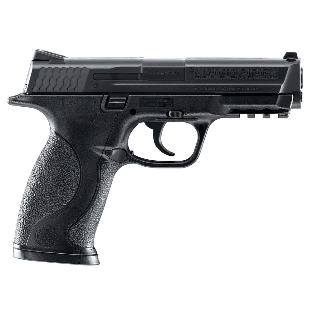 Type: BB air pistol. Manufacturer: Umarex. Model: Smith & Wesosn M&P. Materials: Mostly plastic construction with a few metal parts. Weight: 1 pound. Barrel: 4.25 inches, metal non-rifled. Propulsion: CO2 x 1. Action: Semi auto, double action. Ammunition Type: 4.5mm BB's. Ammunition Capacity: 19 round magazine. FPS: 480. This is another low cost replica air gun from Umarex designed for the more entry level buyer. I wasn't a big fan of the Umarex S&W M&P even before I bought, I purchased it mainly for the comparison review. I have to say the S&W M&P has grown on me soemhwat after shooting and reviewing it, as it does shot well and has great sights on it. I like the fact that the S&W M&P is very true to the original pistol in appearance which as I mentioned before makes it a great candidate as a low cost prop gun for TV and Movie sets. Read full article here: https://www.replicaairguns.com/2011/3/12/umarex-sw-mp-co2-45mm-bb-pistol-review.html Buy Umarex S&W M&P CO2 4.5mm BB Pistol in Canada: https://www.replicaairguns.ca/smith-wesson-mp-45mm-bb-pistol Buy Umarex S&W M&P CO2 4.5mm BB Pistol in the US: https://www.replicaairguns.us/smith-wesson-mp-45mm-bb-pistol