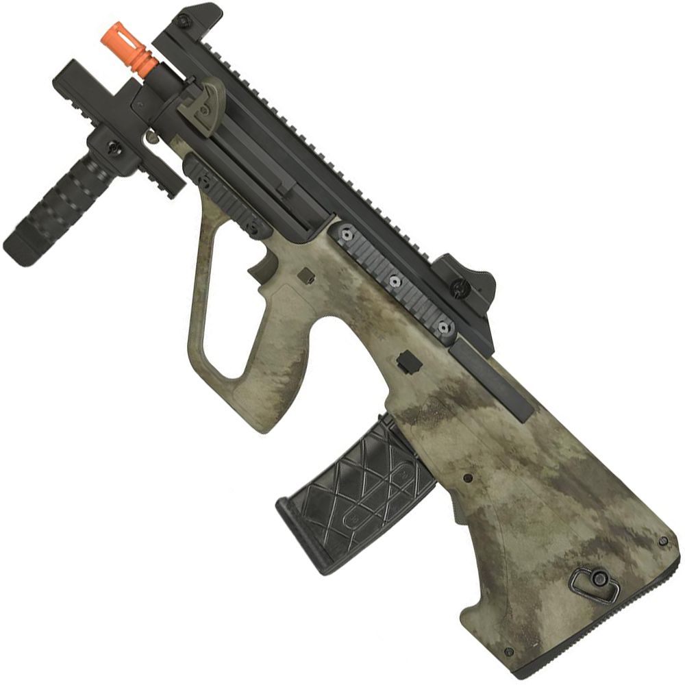 Comments: The STEYR AUG A3 XS Commando Airsoft is a fierce electric rifle engineered for battle at close quarters. The bullpup design moves the core of the rifleās action behind the trigger, making the gun compact and easy to maneuver while keeping the barrel length long for improved accuracy and velocity. The well-rounded weapon features a V3 metal gearbox, adjustable hop-up system, and removable iron sights.