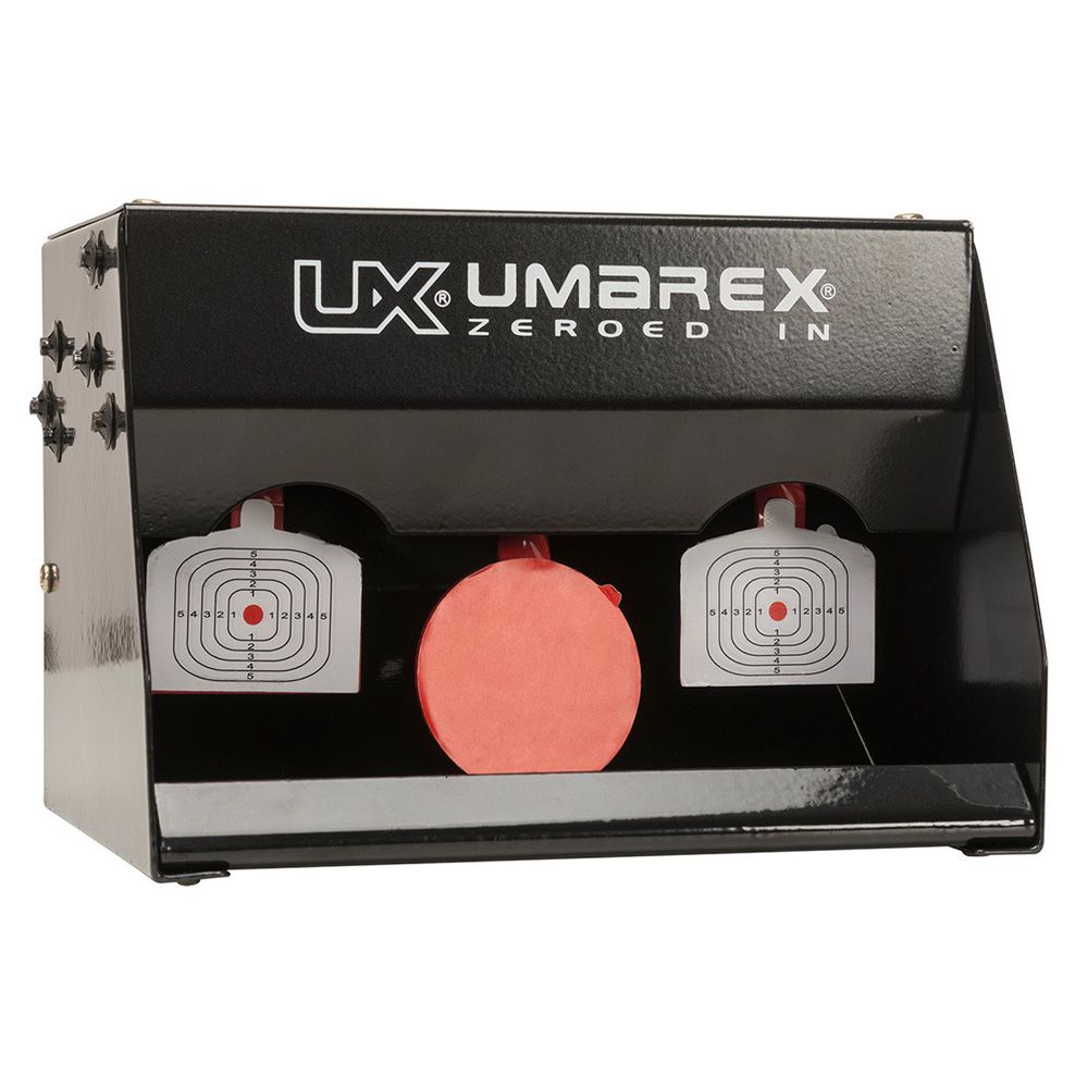 Comments: Improving your aim is easy with the Umarex Auto Reset Shooting Target System. Shooters can spend more time shooting, and less time resetting the targets after each hit. To reset the two metal target paddles, simply shoot the middle red paddle. Recommended for use with .177 and .22 airguns.