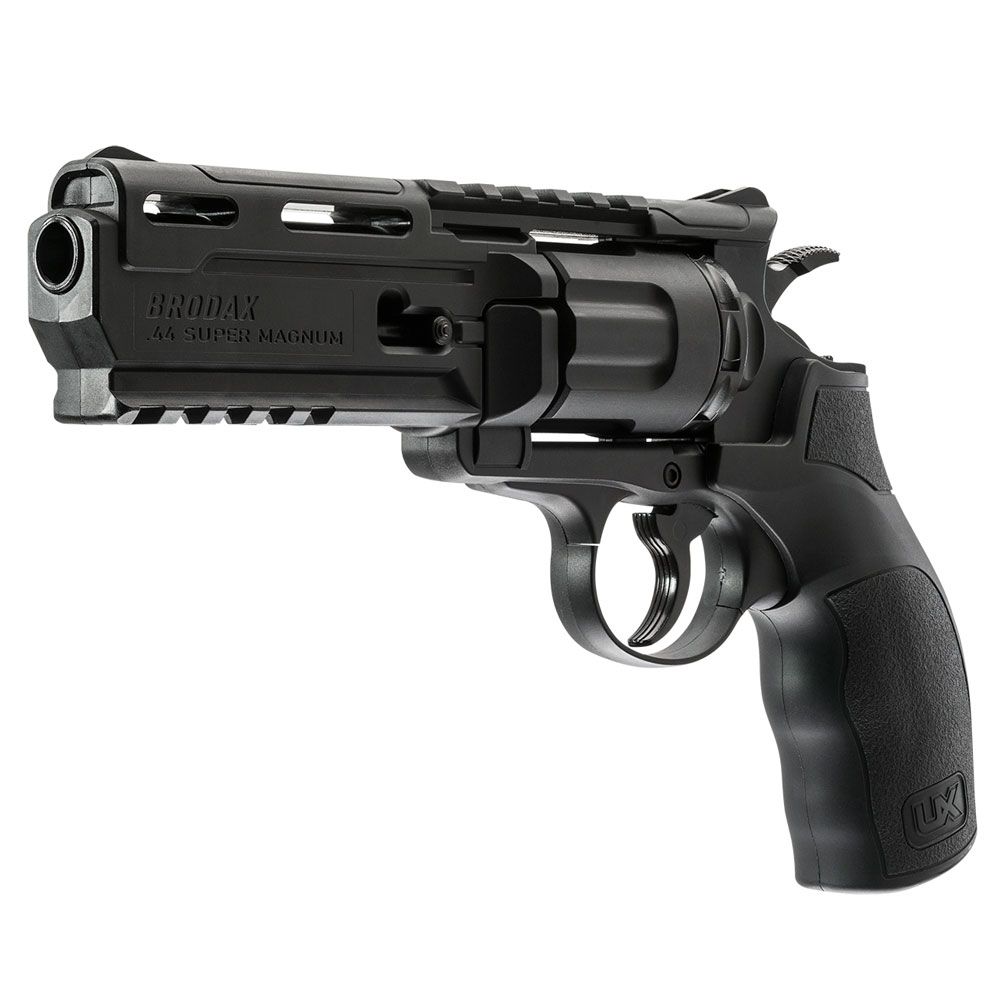 Type: BB Air Revolver. Manufacturer: UmarexUSA. Model: Brodax Materials: Mostly plastic with some metal construction. Weight: 1.3 pounds (586 grams). Barrel: 5.5 inches, non-rifled. Propulsion: 12 gram CO2. Action: Revolver, single & double actions. Ammunition Type: 4.5mm steel BB's. Ammunition Capacity: 10 rounds. FPS: 375. The Umarex Brodax CO2 BB Revolver when I first picked it up did not appeal to me all that much, maybe knowing it was for the most part yet another mostly plastic BB revolver with those thin pop in disc magazines didn't help me take notice much. But as I have been playing around with the Umarex Brodax CO2 BB Revolver it has grown on me a lot. I think it has a really cool look that is also very usable in terms of putting juts about any accessory you want on this CO2 revolver. The hammer and trigger action are also both excellent for not juts an inexpensive Airgun but even a higher end airgun. And right out of the box, or should I say clam-shell plastic wrap, you get three rotary disc magazines which is a nice bonus. Read full article here: https://www.replicaairguns.com/2016/4/5/umarex-brodax-co2-bb-revolver-table-top-review.html Buy the Umarex Brodax BB Revolver in Canada: https://www.replicaairguns.ca/umarex-brodax-bb-revolver-4-5mm-co2