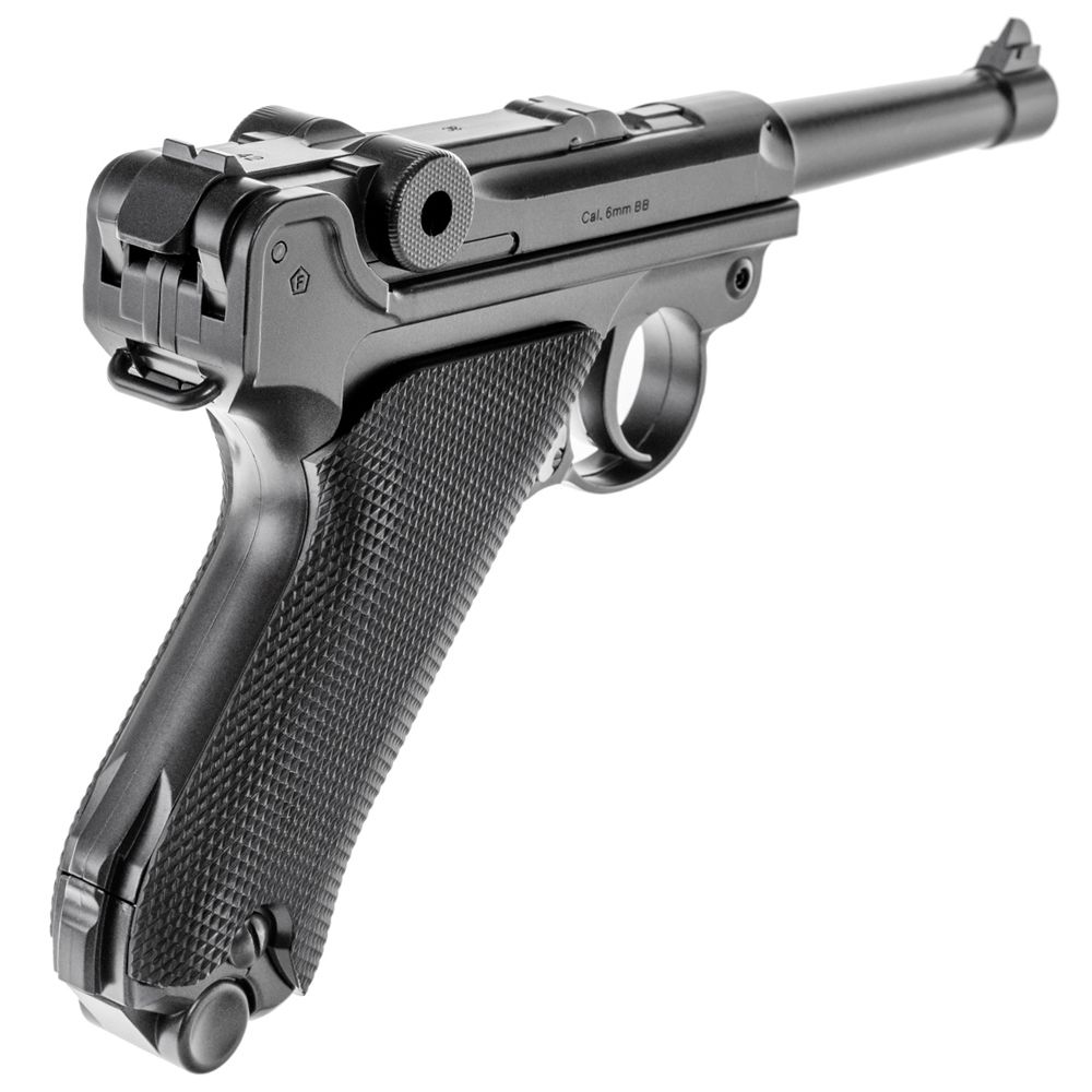 Realism: The Umarex Legends Luger P08 CO2 BB Airgun is very close to the real steel P08 (Luger) and even has the P.08 markings on it. If you where to put a real P08 side by side they would look like mirror images so in terms of looks, this replica gun has it. If you're looking for working parts there are not a lot other than the trigger, magazine release, and safety. But then again there is less to go wrong!