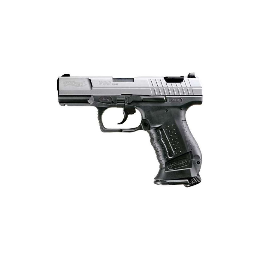The Walther P99 Real Action Marker Paintball pistol is the ultimate in reality training. RAM products are replicas of the actual firearm and utilize clips containing either .43 caliber paintballs or .43 caliber rubber balls. Rubber balls are commonly used for military, police, or other authority training. This P99 RAM is powered by one 12g CO2 capsule. It looks, feels and shoots with great accuracy just like the real P99 for virtual reality paintball. Comes in a foam-lined, black, hard plastic gun case.
