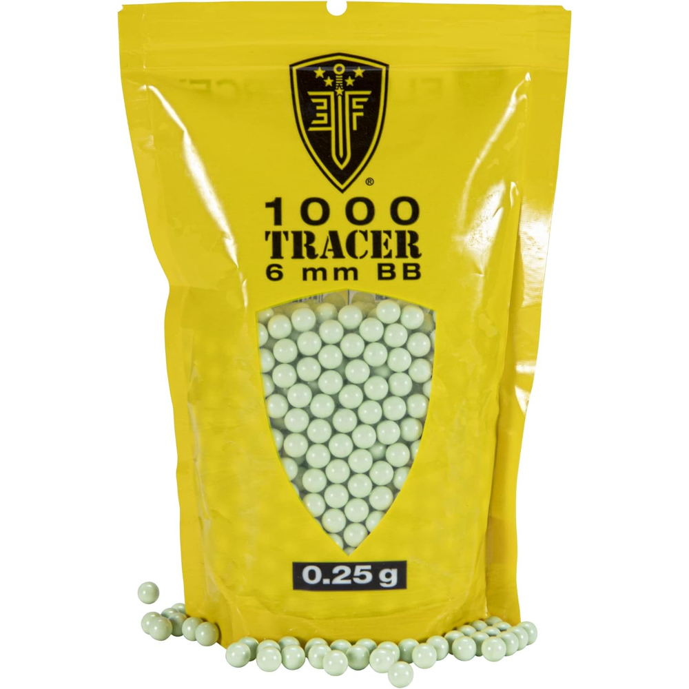 When used in conjunction with a Tracer Unit (not included) these BBs will glow bright green when fired. The darker it is, the brighter it gets. In full-auto mode, you’ll be smiling from ear to ear. Elite Force’s Tracer BBs have precision shape and weight with an excellent polish making them the best tracer BBs available on the market. The high-quality manufacturing process gives precision accuracy, precision shape, and excellent polish. Comes in a reusable bottle; 0.25 gram weight